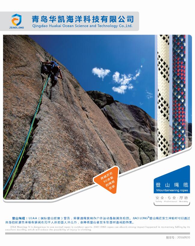 這種編織繩既保留了尼龍繩的優(yōu)點—質量輕,柔韌度強,又去掉了搓制尼龍繩的僵硬、摩擦力大、彈性過大等缺點。編織繩是目前唯一獲得國際山岳聯(lián)盟(Union Internationale Des Associations D Alpinisme,簡稱UIAA)以及歐洲標準委員會(Cornite Europeen de Normalisation,簡稱CEN)檢驗合格的登山繩。