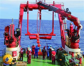 紅圈處為海麗雅集團(tuán)為“蛟龍”研制的臍帶纜,通過(guò)有線數(shù)據(jù)傳輸破解觀測(cè)數(shù)據(jù)實(shí)時(shí)傳輸?shù)氖澜珉y題。