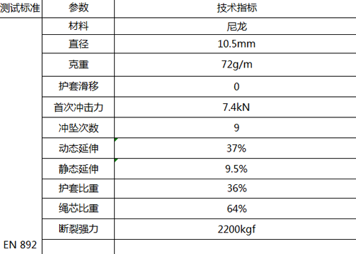 "蛟龍"牌動力繩主要技術(shù)指標(biāo):